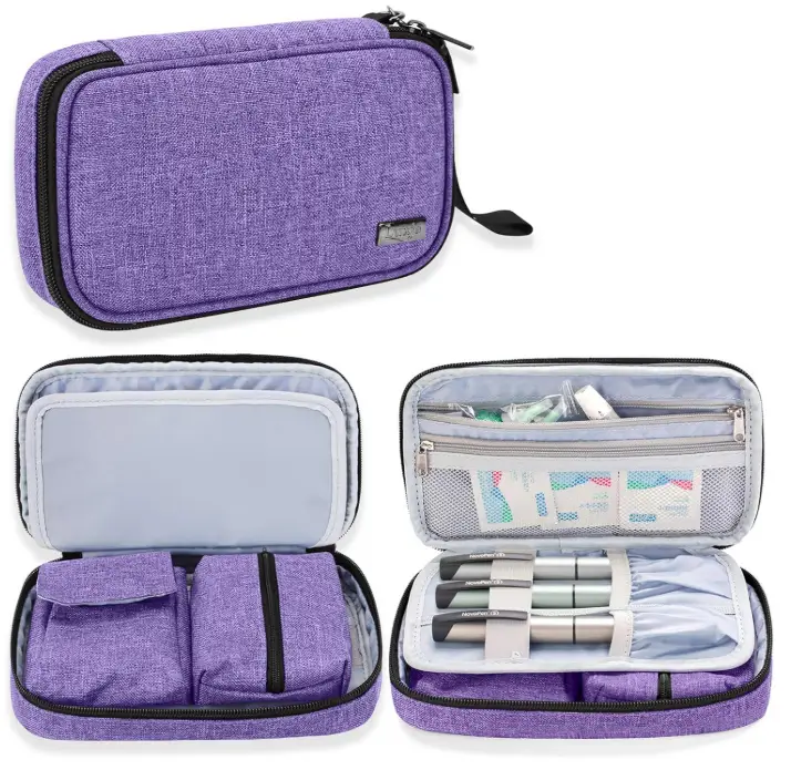 The LUXJA Diabetic Supplies Travel Case is designed to keep glucose meters and essential diabetic supplies organized and easy to access. Its structured interior helps protect devices and supplies while keeping everything neatly in place. Multiple pockets provide space for test strips, lancets, and other daily necessities. Compact and discreet in purple, this case is ideal for travel or everyday use