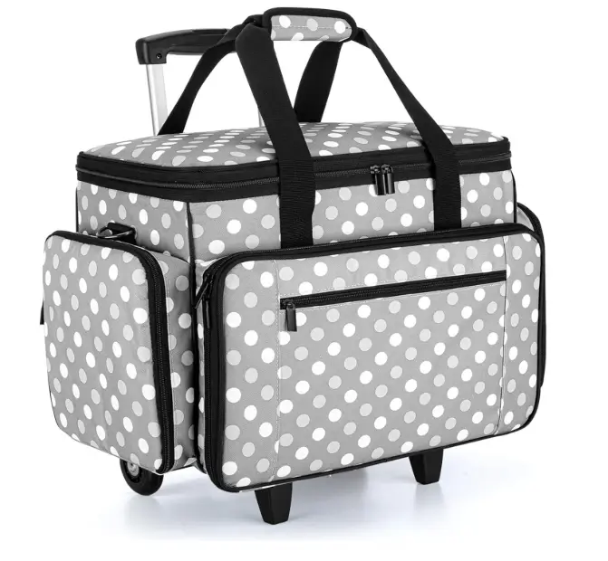 LUXJA Sewing Machine Case with Detachable Dolly, Rolling Sewing Machine Tote with Removable Bottom Pad (Fits for Most Standard Sewing Machines), Gray Dots (Patented Design)