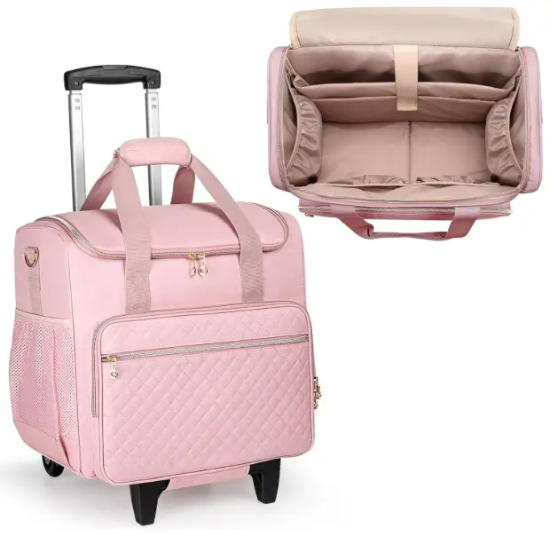 The LUXJA Sewing Machine Case with Detachable Dolly is designed to make transporting your sewing machine easier, safer, and more comfortable. Its padded interior and removable bottom pad help protect your machine from bumps and vibration, while the sturdy structure keeps it secure. The detachable rolling dolly allows you to move heavier machines effortlessly, reducing strain on your arms and back. With practical storage pockets and a stable, well-balanced design, this case is ideal for sewists who travel to classes, workshops, or need organized storage at home